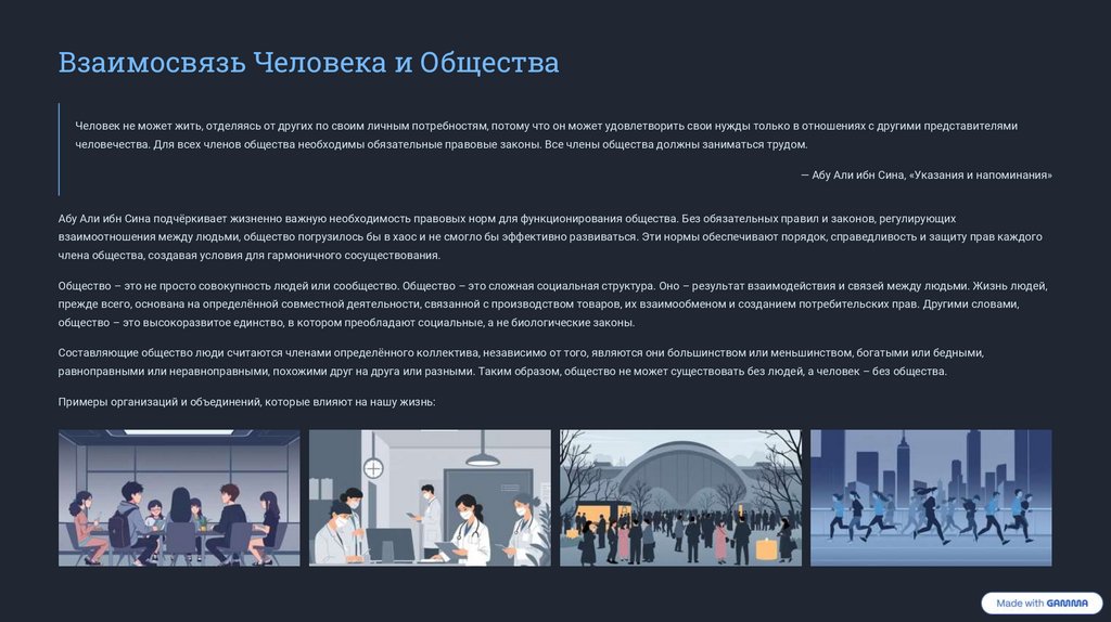 Взаимосвязь Человека и ОбществаЧеловек не может жить, отделяясь от других по своим личным потребностям, потому что он может удовлетворить свои нужды только в отношениях с другими представителями