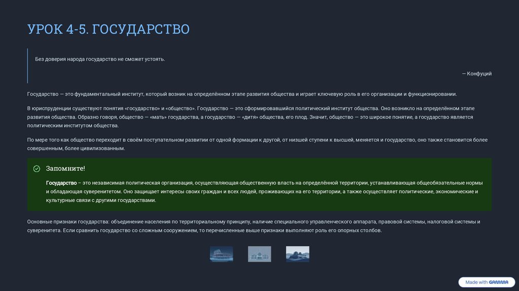 УРОК 4-5. ГОСУДАРСТВОБез доверия народа государство не сможет устоять.