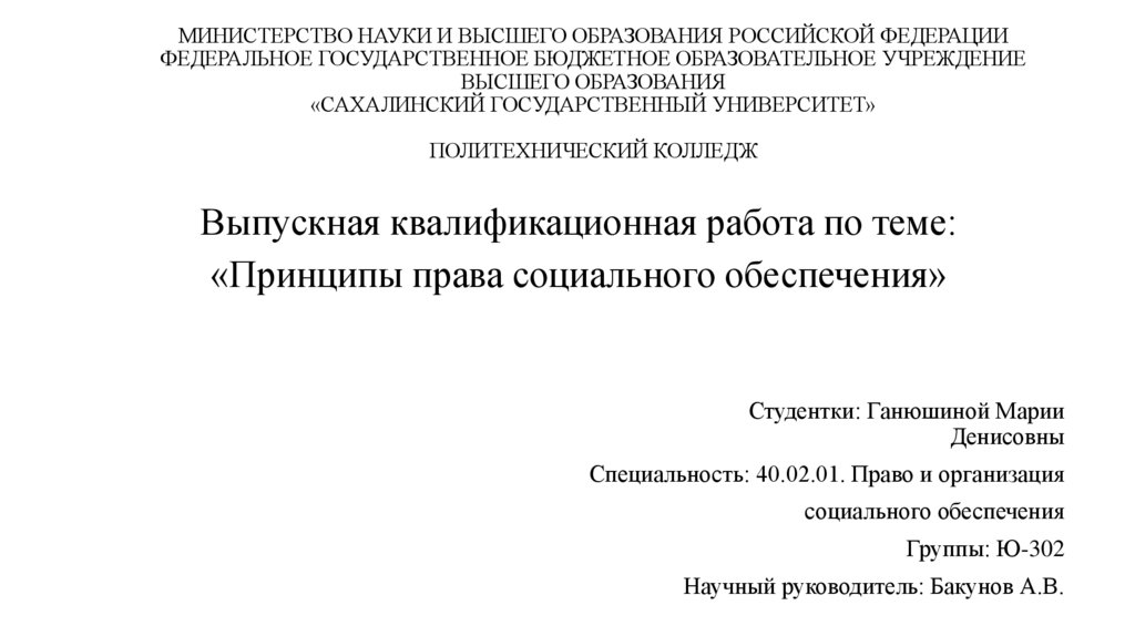 ВЫСШЕГО ОБРАЗОВАНИЯ«САХАЛИНСКИЙ ГОСУДАРСТВЕННЫЙ УНИВЕРСИТЕТ»