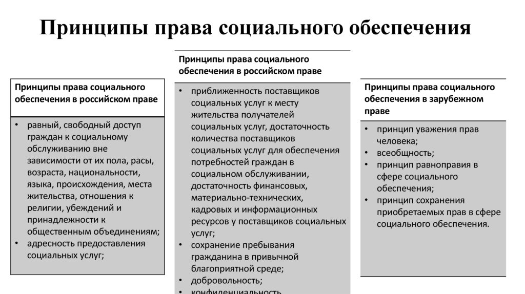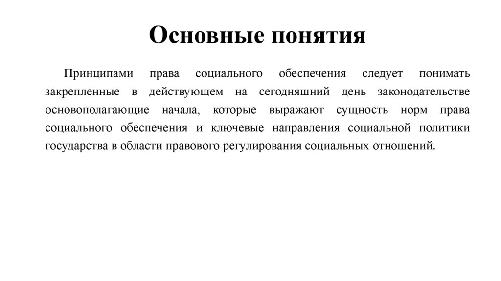 Принципами права социального обеспечения следует пониматьзакрепленные в действующем на сегодняшний день законодательстве