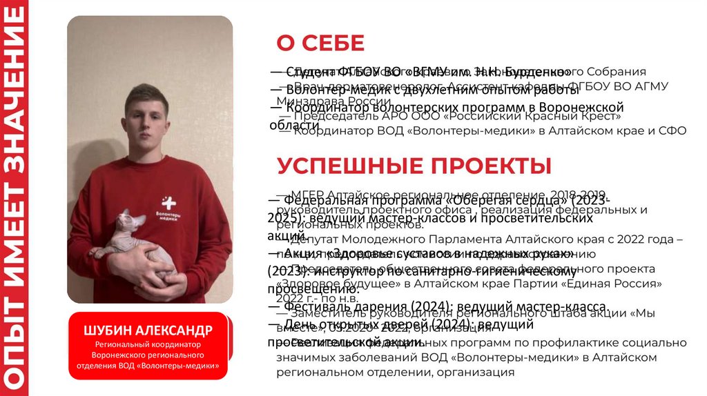 — Студент ФГБОУ ВО «ВГМУ им. Н.Н. Бурденко»— Волонтер-медик с двухлетним опытом работы