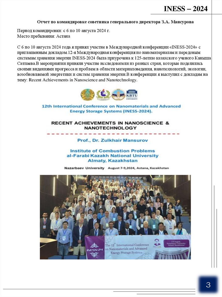 INESS – 2024Отчет по командировке советника генерального директора З.А. Мансурова