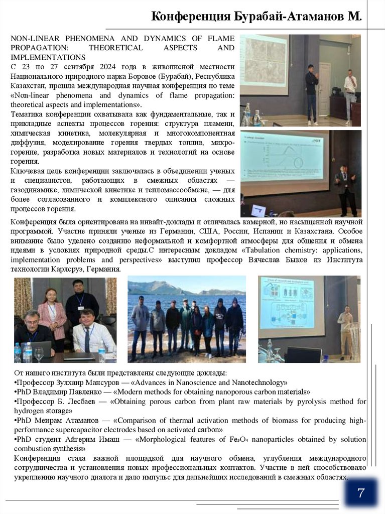 Конференция Бурабай-Атаманов М.NON-LINEAR PHENOMENA AND DYNAMICS OF FLAME