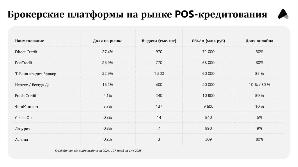 Брокерские платформы на рынке POS-кредитованияДоля на рынке