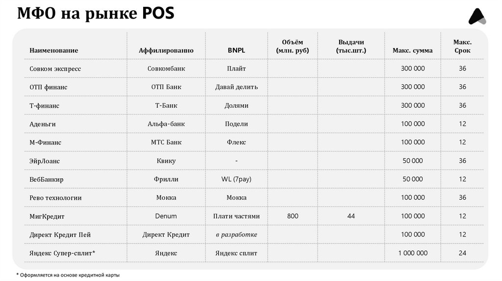 Финансовые компании на рынке POS (2024 г.)Наименование
