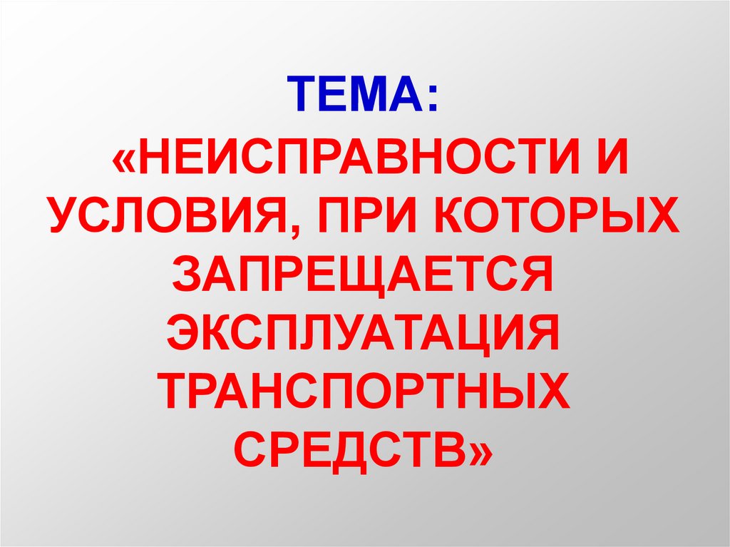 НЕИСПРАВНОСТИ И УСЛОВИЯ ПРИ КОТОРЫХЭКСПЛУАТАЦИЯ ТРАНСПОРТНЫХ СРЕДСТВ ЗАПРЕШЕНА: