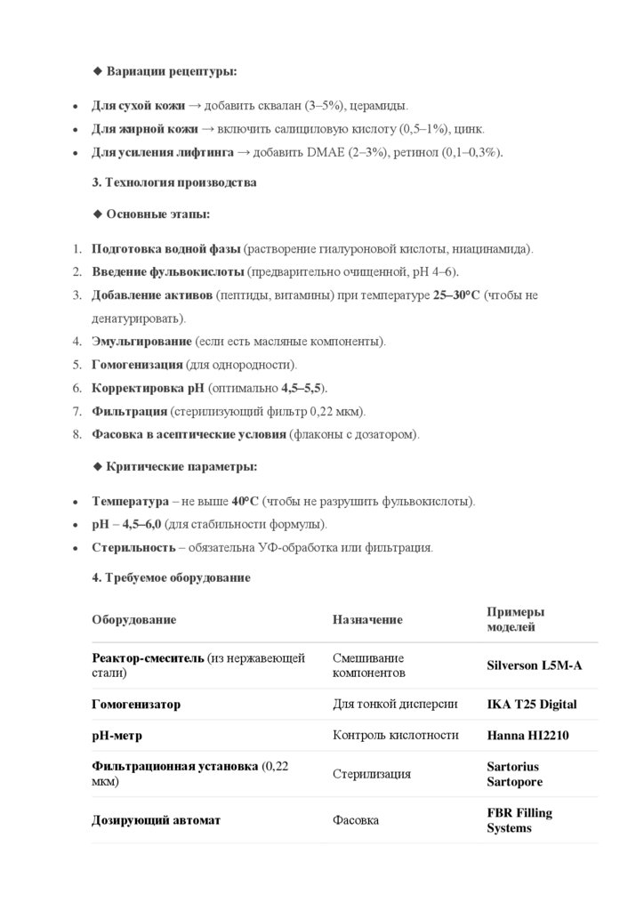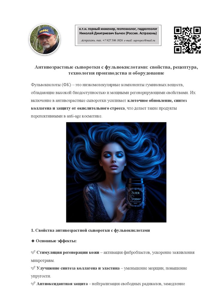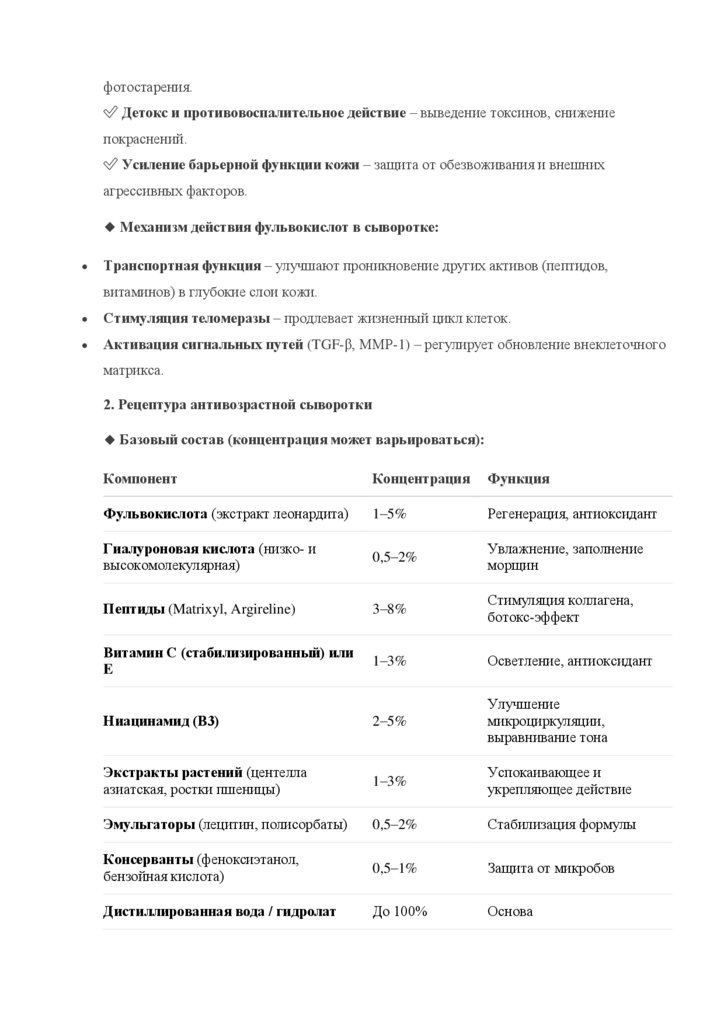 1. Свойства антивозрастной сыворотки с фульвокислотами