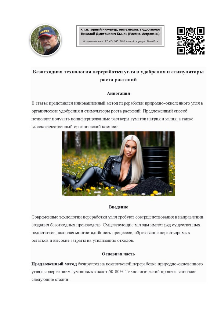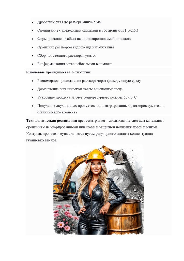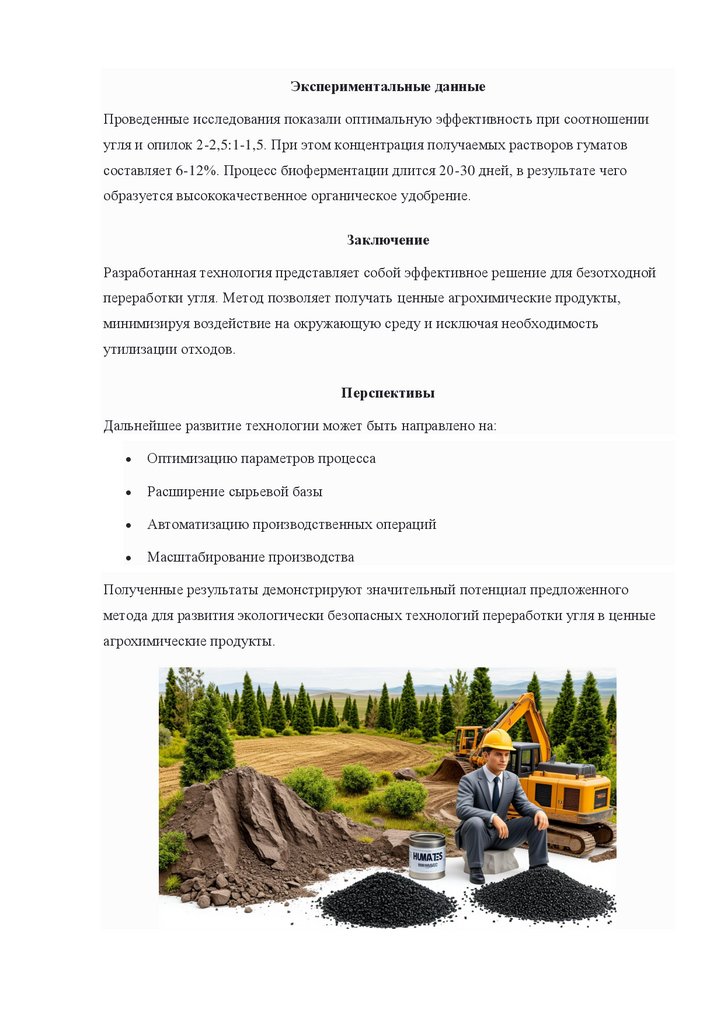 Безотходная технология переработки угля в удобрения и стимуляторы