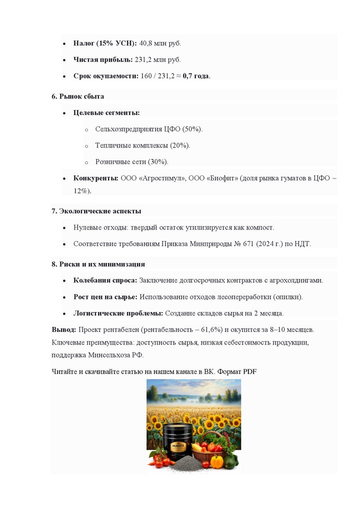 Конкуренты: ООО «Агростимул», ООО «Биофит» (доля рынка гуматов в ЦФО –