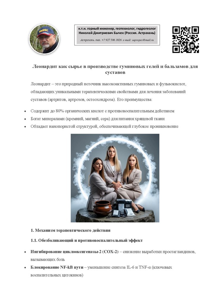 Леонардит как сырье в производстве гуминовых гелей и бальзамов для суставов