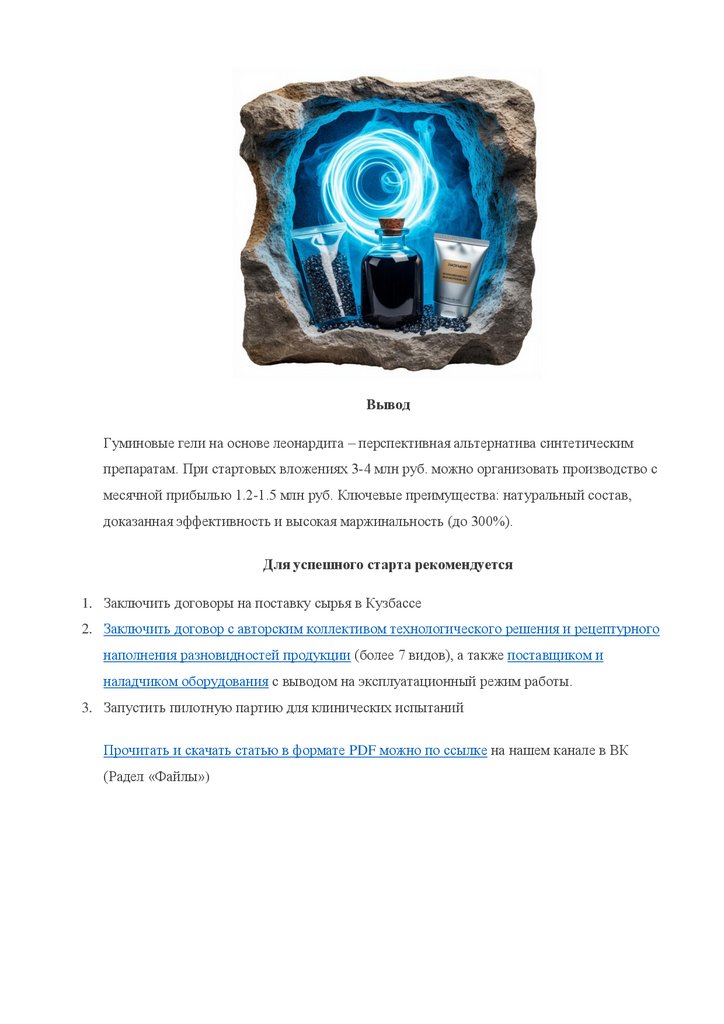 Леонардит как сырье в производстве гуминовых гелей и бальзамов для