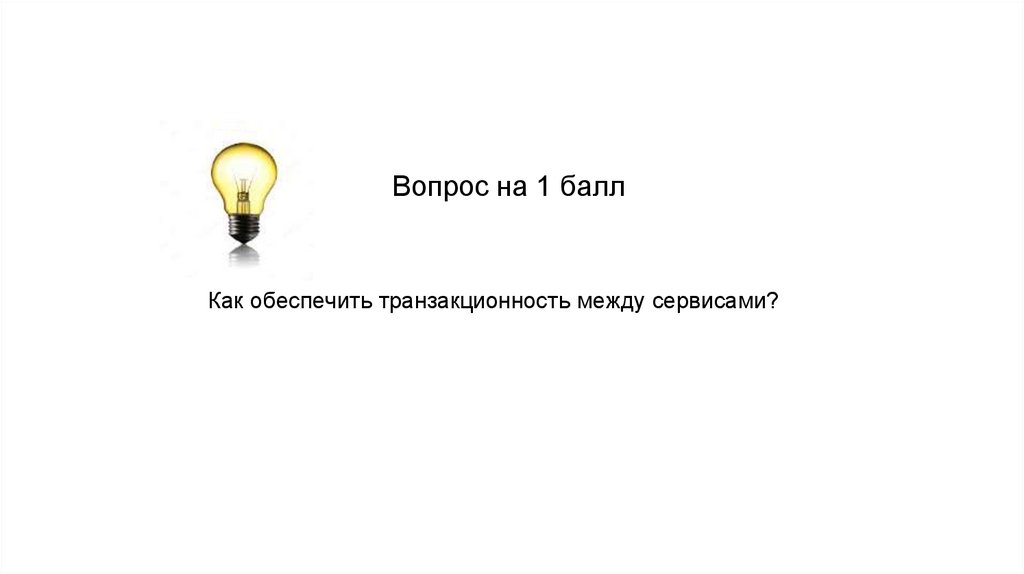 Вопрос на 1 баллКак обеспечить транзакционность между сервисами?