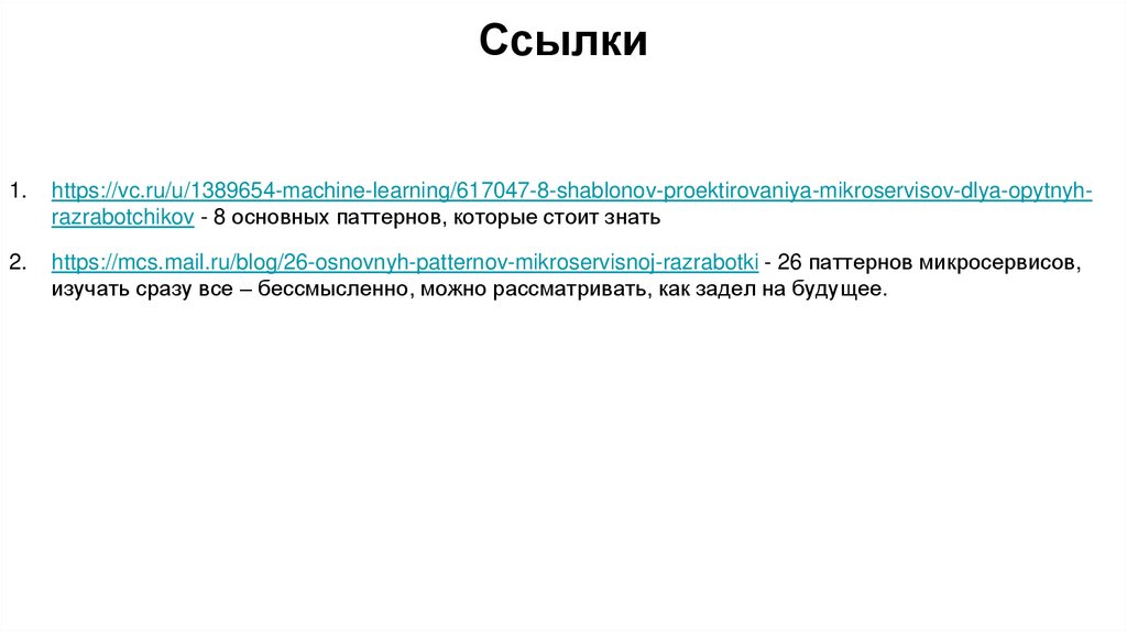 https://mcs.mail.ru/blog/26-osnovnyh-patternov-mikroservisnoj-razrabotki - 26 паттернов микросервисов,