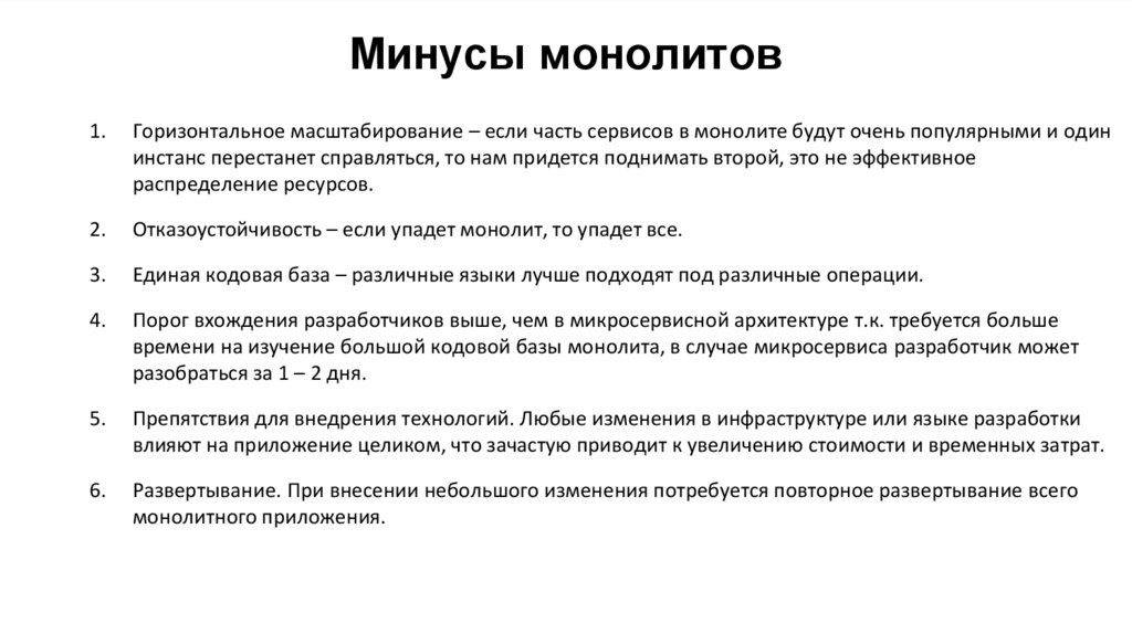 Монолитные приложения работают достаточно эффективно до тех пор, пока они не