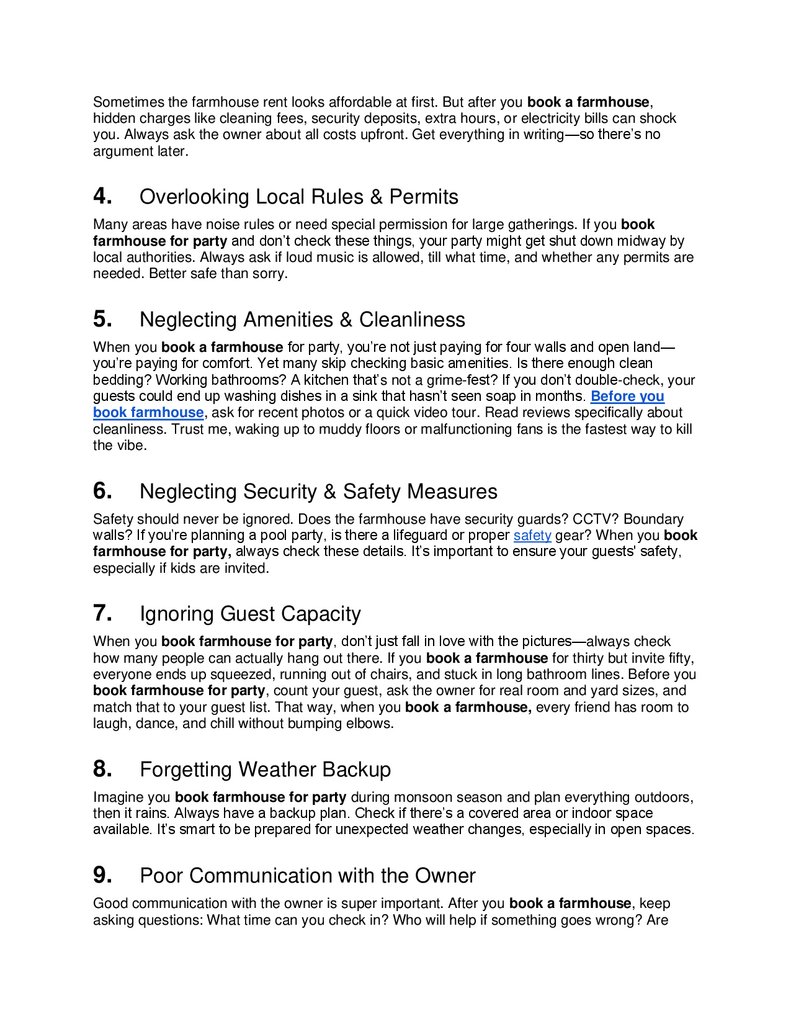 When you book farmhouse for party, don’t just fall in love with the pictures—always check