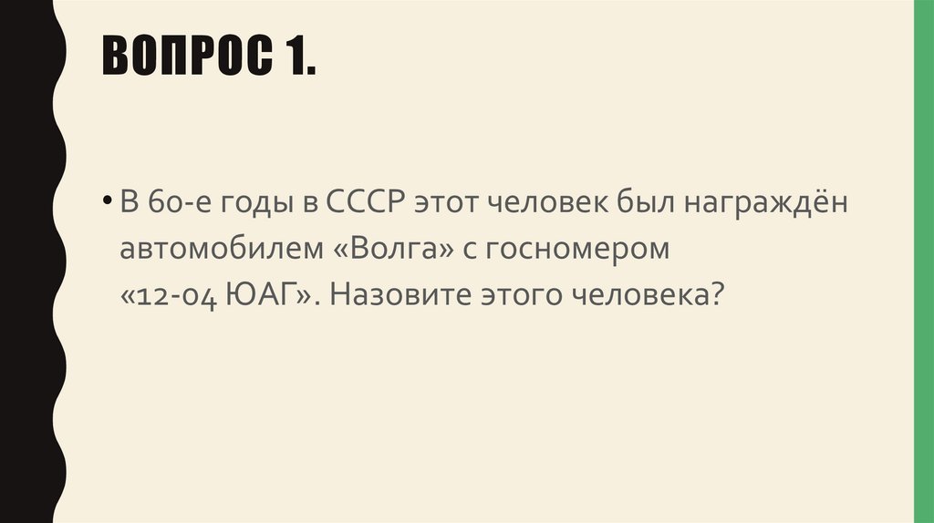 ВОПРОС 1.• В 60-е годы в СССР этот человек был награждён