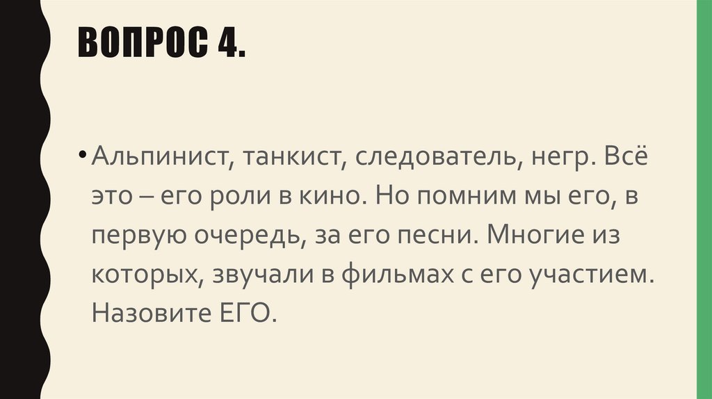ВОПРОС 4.• Альпинист, танкист, следователь, негр. Всё