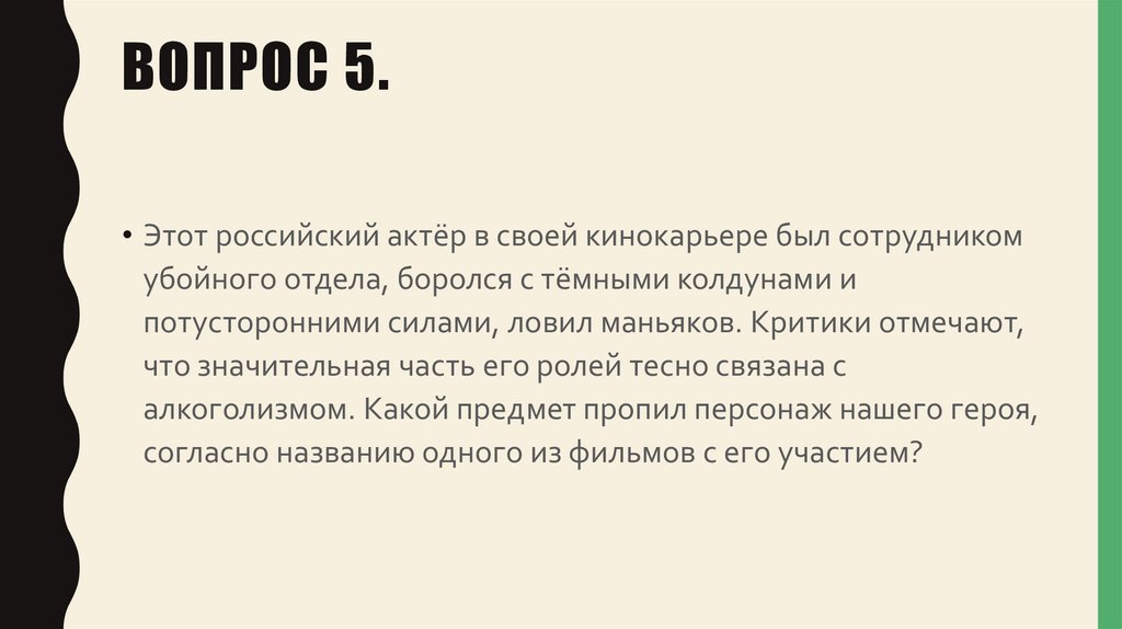 ВОПРОС 5.• Этот российский актёр в своей кинокарьере был сотрудником