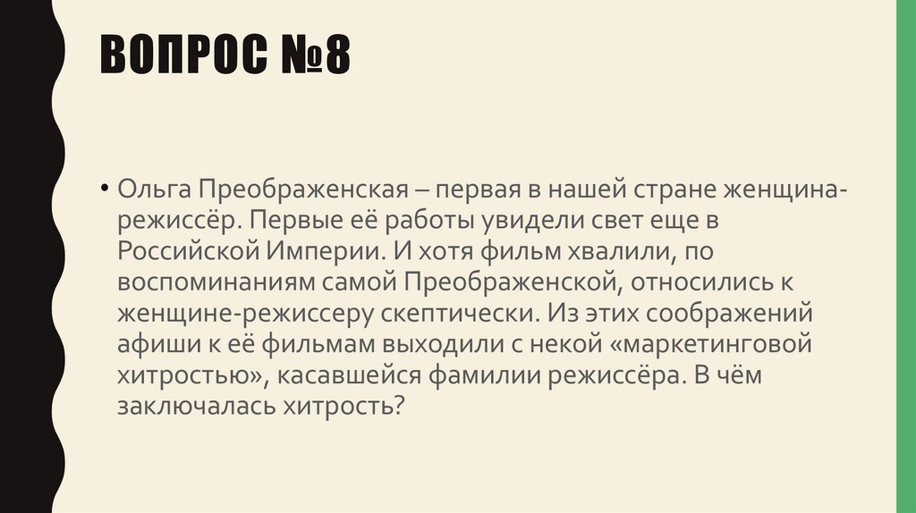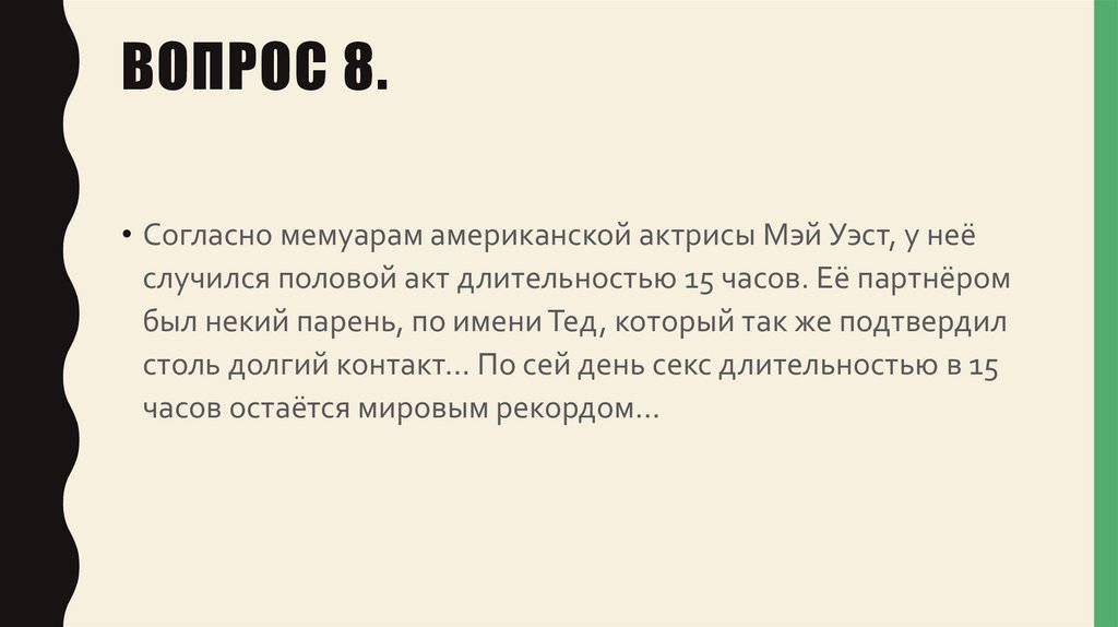 ВОПРОС 8.• Согласно мемуарам американской актрисы Мэй Уэст, у неё