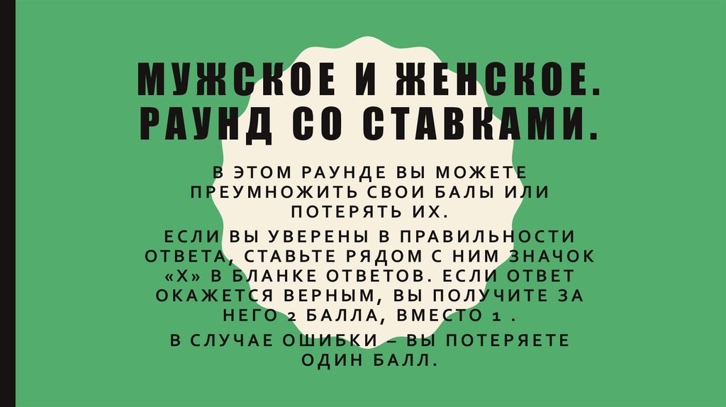 МУЖСКОЕ И ЖЕНСКОЕ.РАУНД СО СТАВКАМИ.