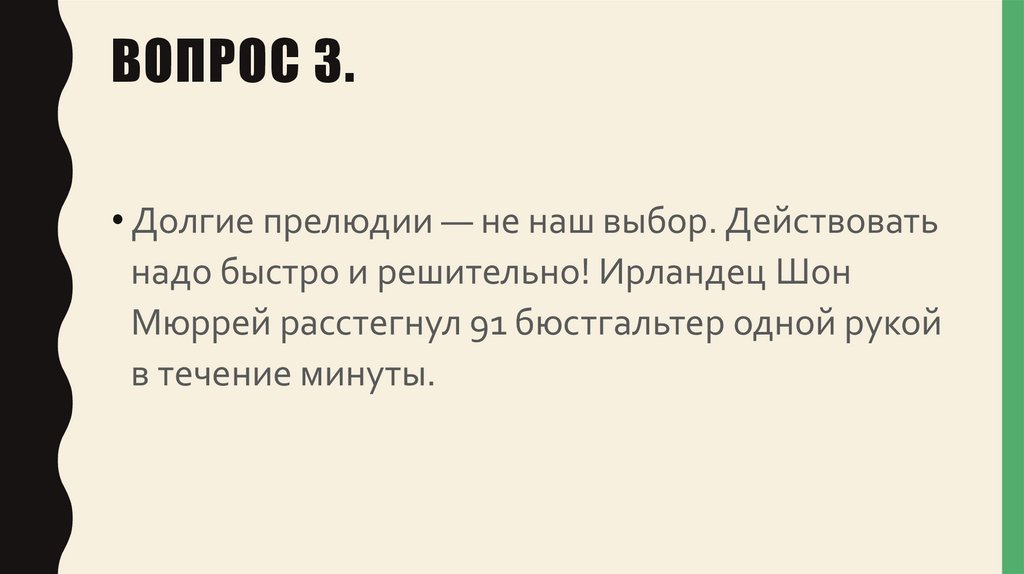 ВОПРОС 3.• Долгие прелюдии — не наш выбор. Действовать