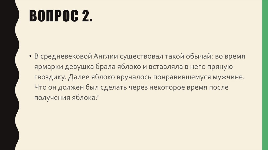 ВОПРОС 2.• В средневековой Англии существовал такой обычай: во время