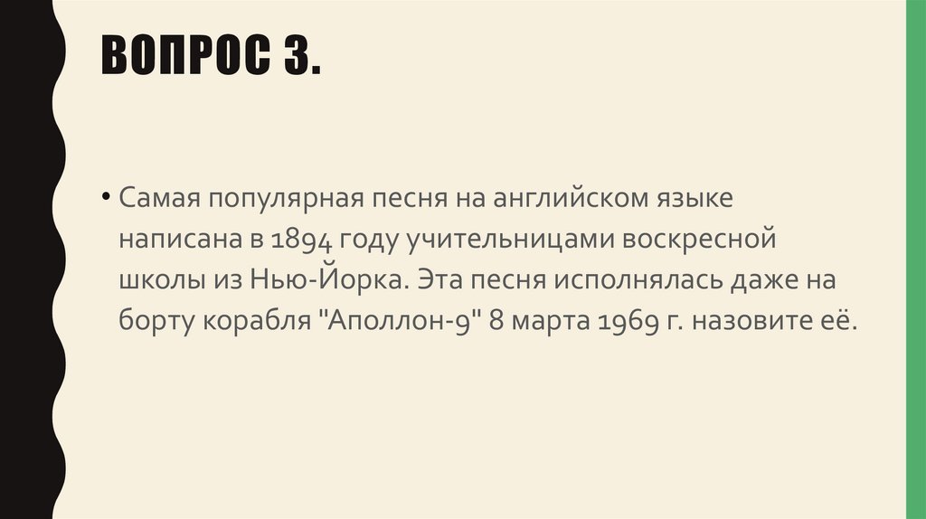 ВОПРОС 3.• Самая популярная песня на английском языке