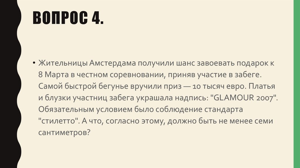 ВОПРОС 4.• Жительницы Амстердама получили шанс завоевать подарок к