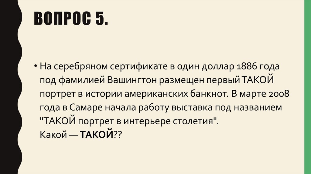 ВОПРОС 5.• На серебряном сертификате в один доллар 1886 года