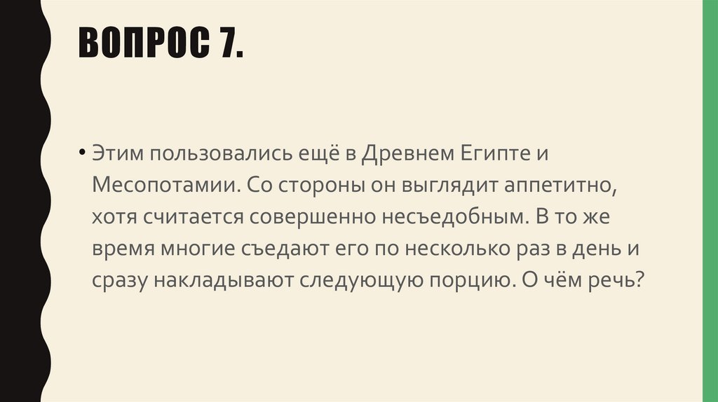 ВОПРОС 7.• Этим пользовались ещё в Древнем Египте и