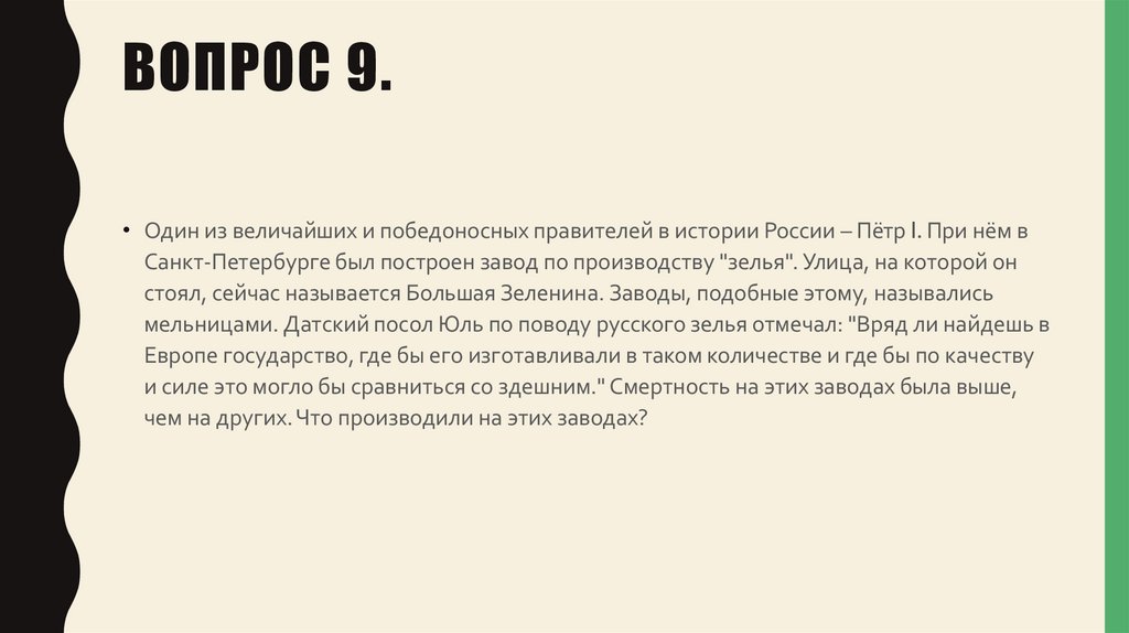 ВОПРОС 9.• Один из величайших и победоносных правителей в истории России – Пётр I. При нём в