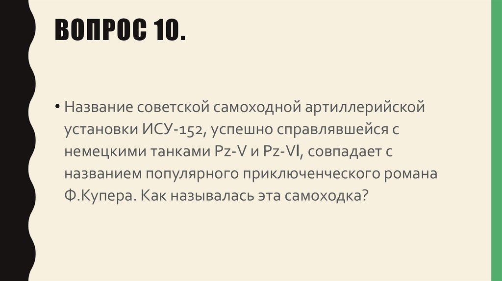 ВОПРОС 10.• Название советской самоходной артиллерийской