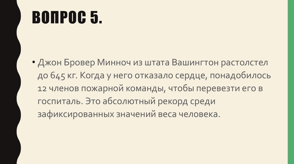 ВОПРОС 5.• Джон Бровер Минноч из штата Вашингтон растолстел