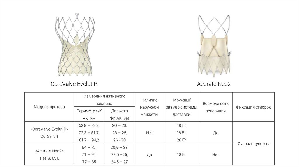 Имплантация протезов больших размеров («CoreValve Evolut R» 34), а также увеличение времени флюороскопии и