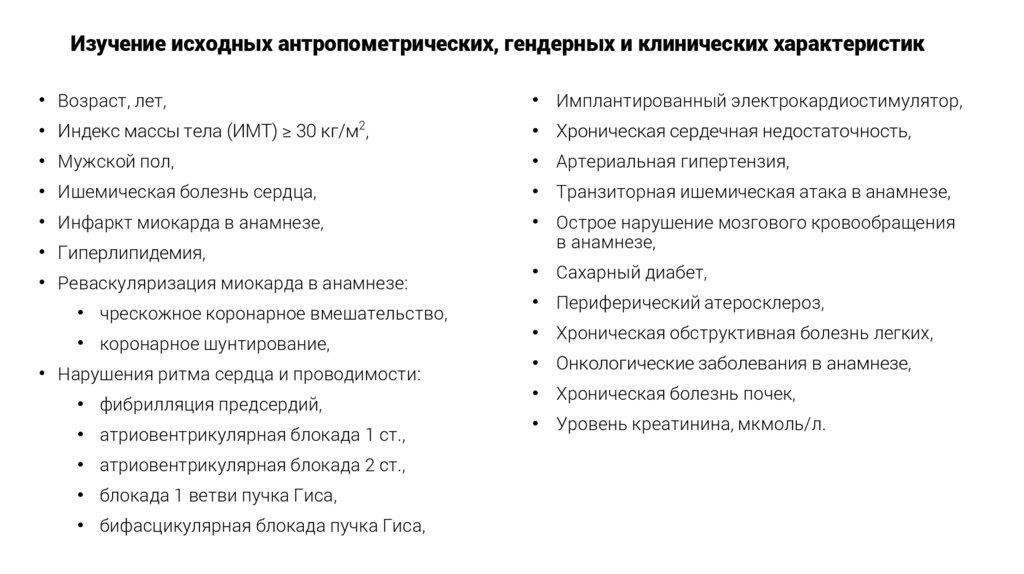 Проведена сравнительная оценка предоперационных антропометрических, гендерных
