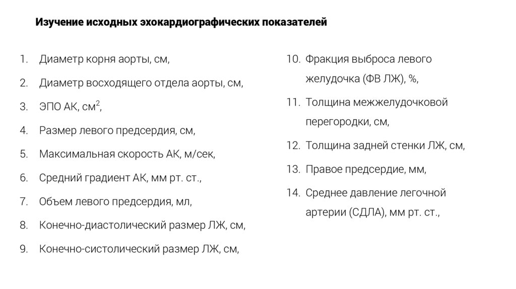 Изучить ранние послеоперационные эхокардиографические параметры гемодинамики после ТИАК