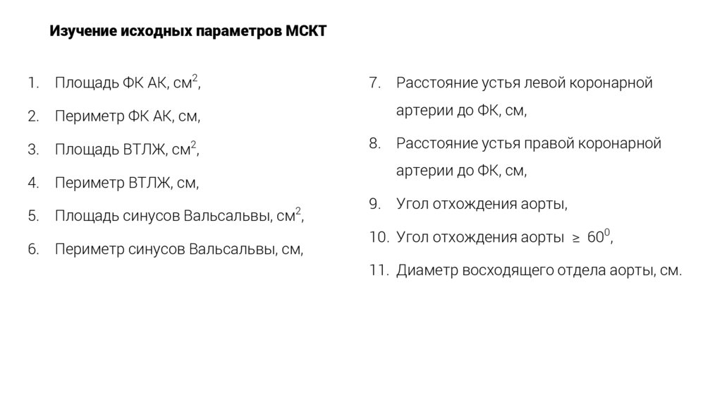 Определить исходные клинические, эхокардиографические параметры и показатели МСКТ,