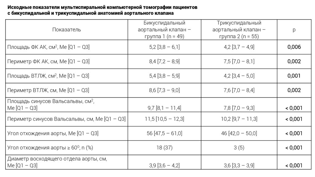 объема полученного излучения характерно для ТИАК при БАК по сравнению с трикуспидальной анатомией АК