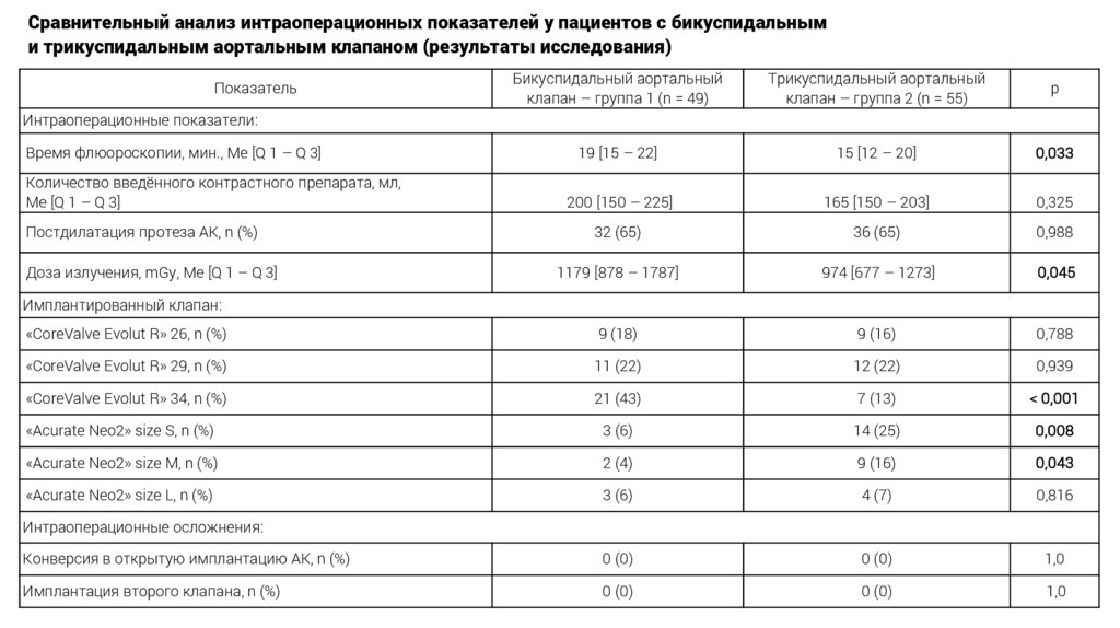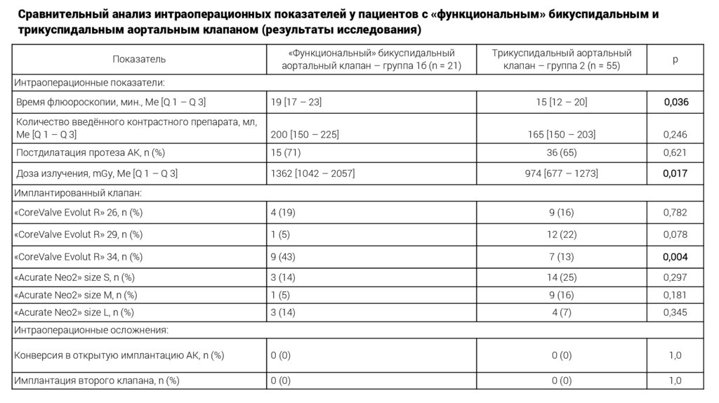 с имплантацией при трикуспидальной анатомии АК результаты.