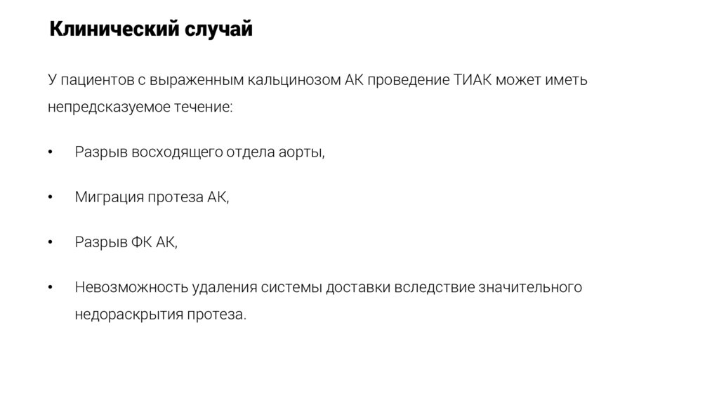 Клинический случайУ пациентов с выраженным кальцинозом АК проведение ТИАК может иметь