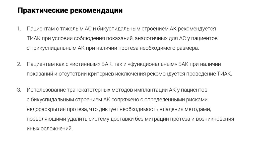 Практические рекомендации1. Пациентам с тяжелым АС и бикуспидальным строением АК рекомендуется