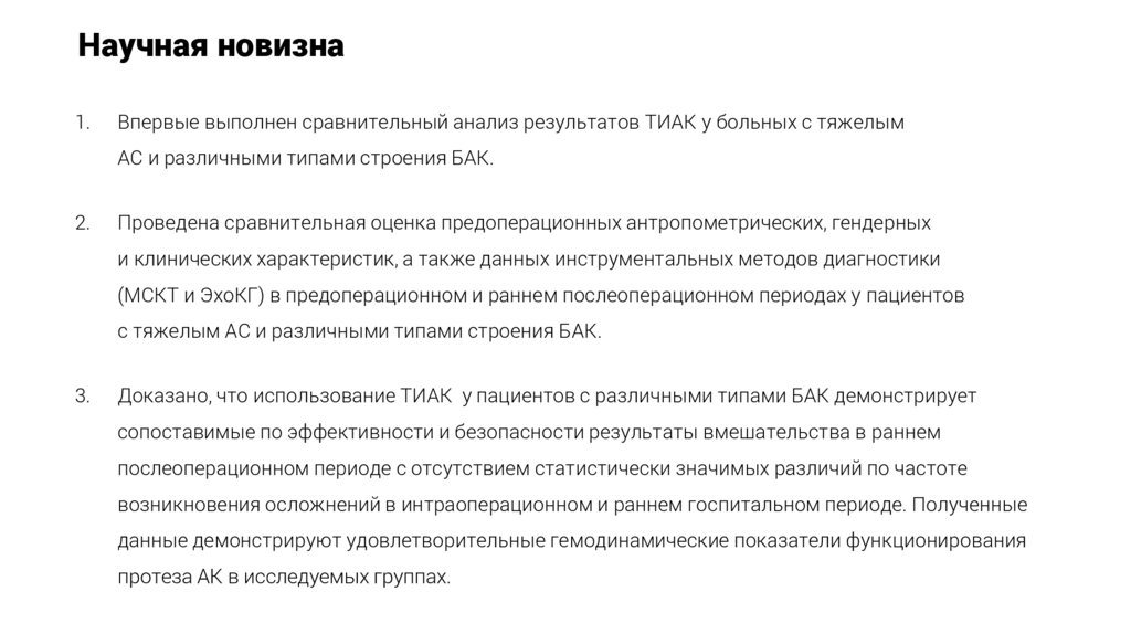 Впервые выполнен сравнительный анализ результатов ТИАК у больных с тяжелым