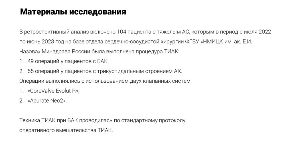 Материалы исследованияВ ретроспективный анализ включено 104 пациента с тяжелым АС, которым в период с июля 2022