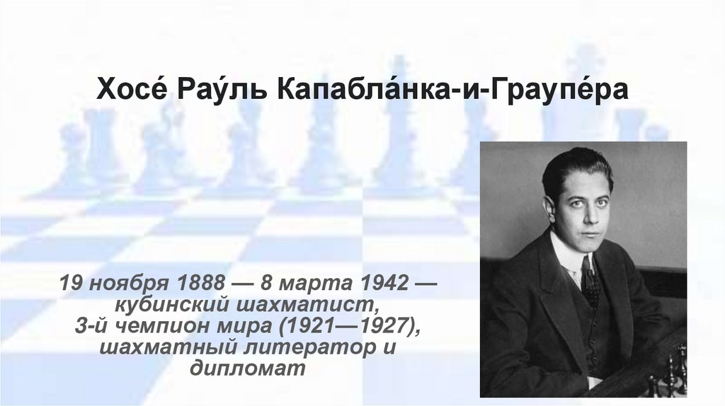 Хосе́ Рау́ль Капабла́нка-и-Граупе́ра19 ноября 1888 — 8 марта 1942 —