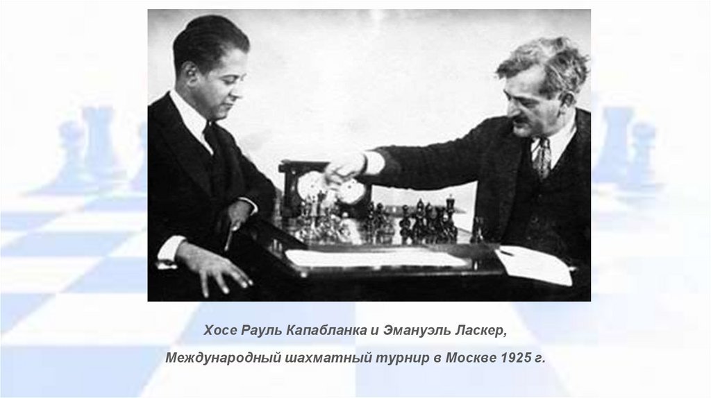 Хосе Рауль Капабланка и Эмануэль Ласкер,Международный шахматный турнир в Москве 1925 г.