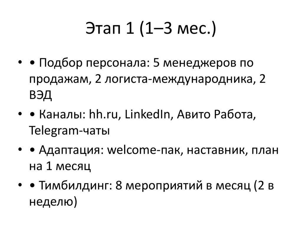 Этап 1 (1–3 мес.)• • Подбор персонала: 5 менеджеров по