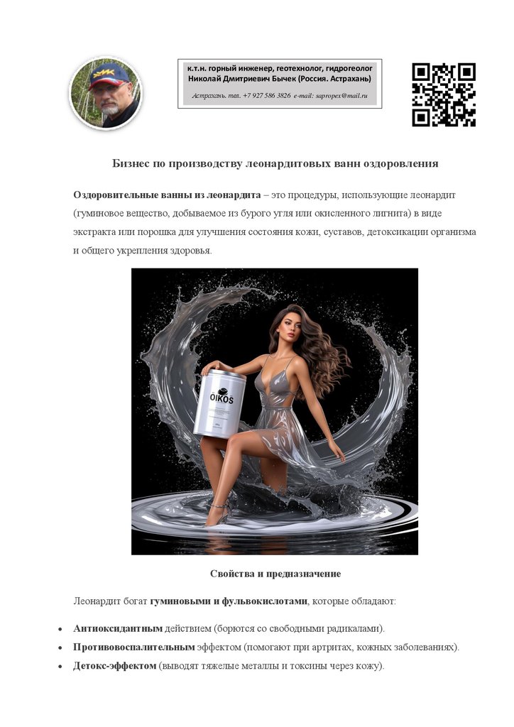 Бизнес по производству леонардитовых ванн оздоровления