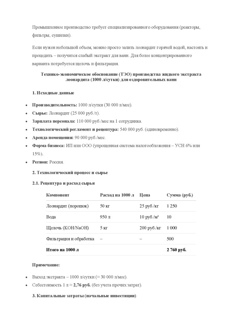 Производство жидкого экстракта леонардита рентабельно (73%) и окупается менее чем