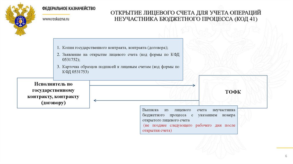 ОТКРЫТИЕ ЛИЦЕВОГО СЧЕТА ДЛЯ УЧЕТА ОПЕРАЦИЙНЕУЧАСТНИКА БЮДЖЕТНОГО ПРОЦЕССА (КОД 41)