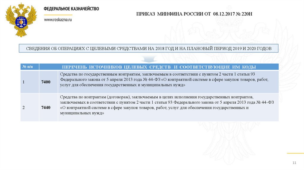 ПРИКАЗ МИНФИНА РОССИИ ОТ 08.12.2017 № 220НСВЕДЕНИЯ ОБ ОПЕРАЦИЯХ С ЦЕЛЕВЫМИ СРЕДСТВАМИ НА 2018 ГОД И НА ПЛАНОВЫЙ ПЕРИОД 2019 И 2020 ГОДОВ